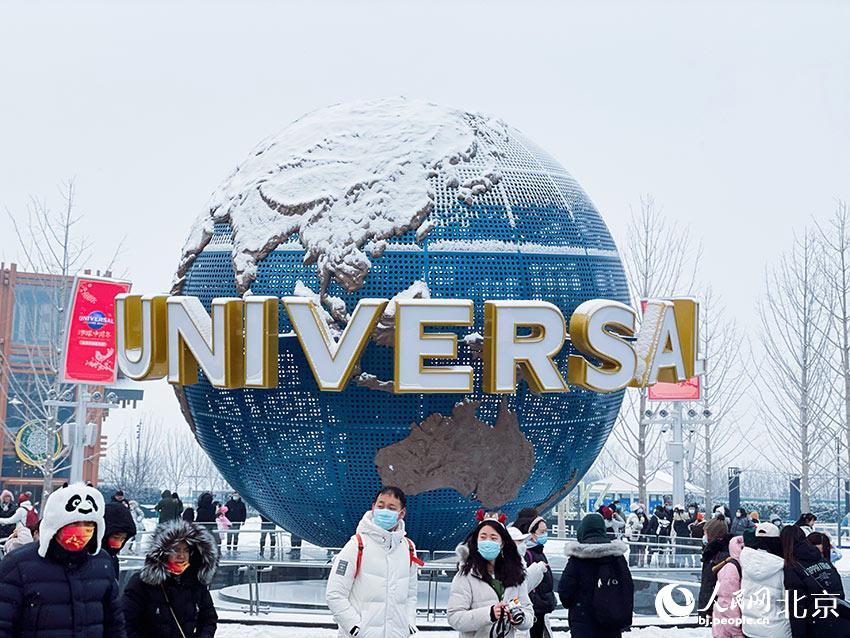 在紛紛揚揚的雪花中,北京環球度假區開啟了首個“環球中國年”季節性主題活動。人民網 董兆瑞攝