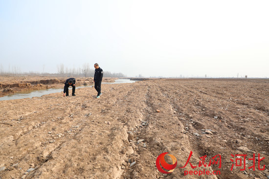 2021年12月8日,臨漳縣鄴城村第一巡查組巡查員張志民和同事在鄴城鎮鄴城村漳河南岸巡邏。 申志好攝