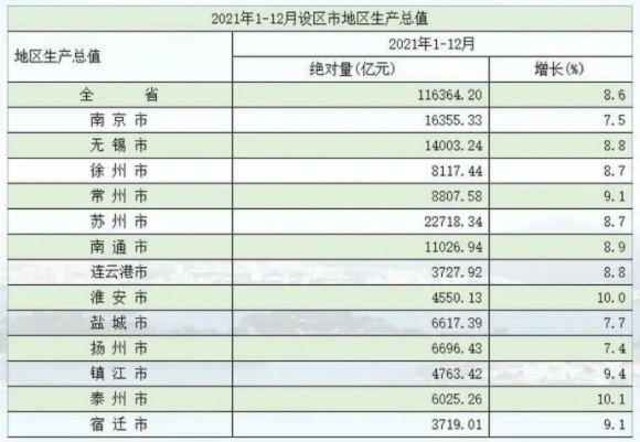 從目前國內(nèi)已公布 2021年經(jīng)濟(jì)數(shù)據(jù)的省市來看,去年經(jīng)濟(jì)總量前五名基本確定,分別為廣東、江蘇、山東、浙江、河南。江蘇以116364.2億元位列第二,邁上11萬億元新臺階。根據(jù)地區(qū)生產(chǎn)總值統(tǒng)一核算結(jié)果,2021年江蘇全省實(shí)現(xiàn)生產(chǎn)總值116364.2億元,按不變價(jià)格計(jì)算,比上年增長8.6%,兩年平均增長6.1%。