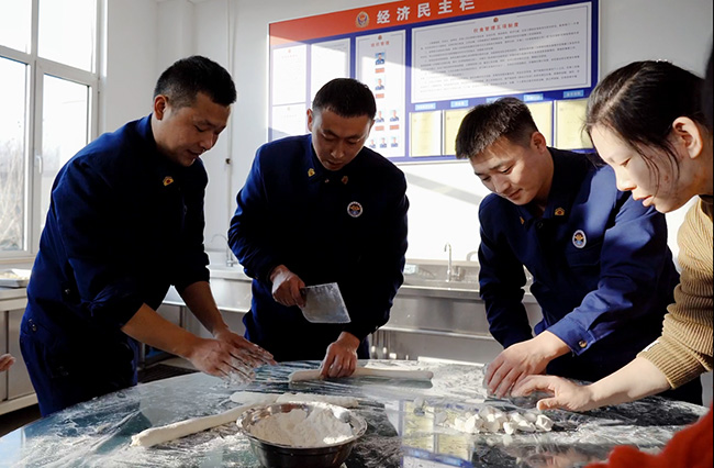 一起包餃子。 濰坊諸城市消防救援大隊供圖