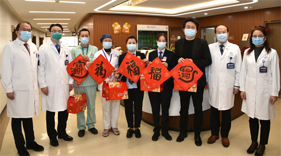 醫(yī)院為她們每個(gè)人都準(zhǔn)備了一份洋溢著濃濃年味的年貨,有魚有肉,有糖有果,院領(lǐng)導(dǎo)還給這些外地職工送上由醫(yī)院職工書寫的“福”字,讓留在上海過(guò)年的她們可以有滋有味地過(guò)年。