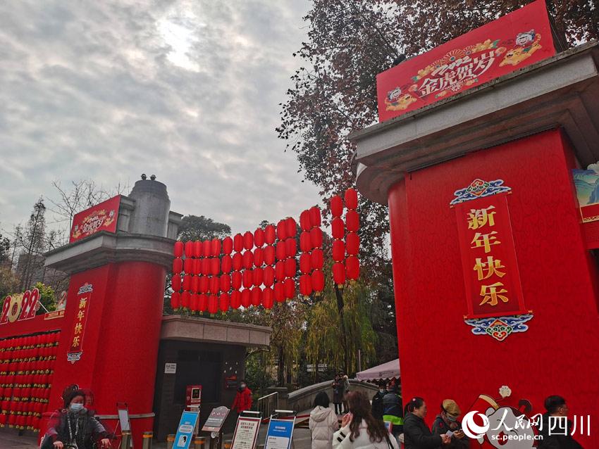 紅梅花開顏若火,金虎賀歲報春來。近日,在成都市人民公園內,過年的氣氛充盈流動,帶給每一位游客辭舊迎新的喜悅。