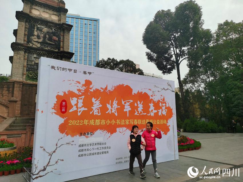 參加寫春聯活動的小選手合影。人民網 劉海天攝