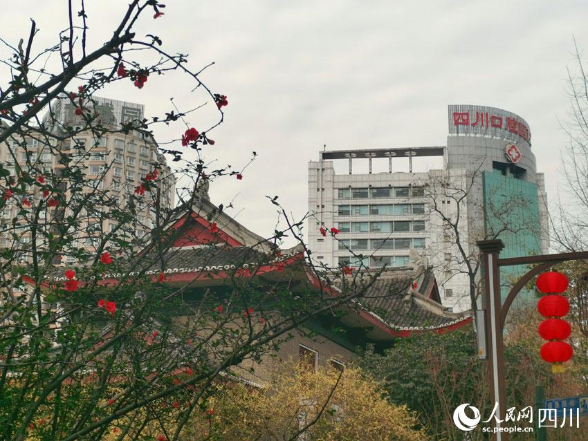 紅梅花已經迎春綻放,老建筑依舊古色古香。人民網 劉海天攝