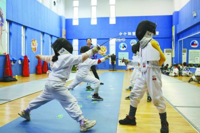 昨天,小學生在鼓樓區南財大附小參加擊劍社團活動。 南京日報/紫金山新聞記者 徐琦 攝