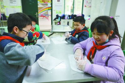 昨天,小學生在鼓樓區南財大附小參加小廚神社團活動。 南京日報/紫金山新聞記者 徐琦 攝