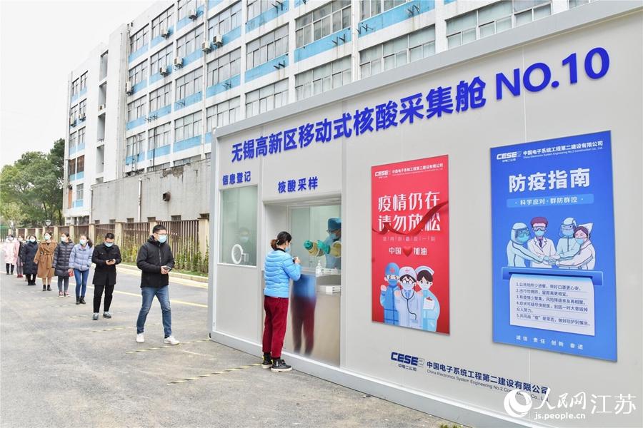 人民網無錫2月21日電(王丹丹)截至目前,江蘇省無錫市本輪疫情累計報告12例陽性感染者,根據疫情防控需要,無錫高新區多地“上線”移動式核酸采集艙,免費提供“應檢盡檢”服務,每小時可采樣200人以上。