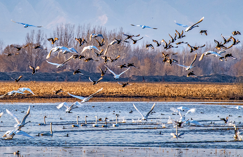 近年來,萬榮縣不斷加大黃河濕地的保護力度,濕地的環境越來越好,鳥類數量和種類逐年增加,成為鳥類的美麗家園。(薛俊 攝)