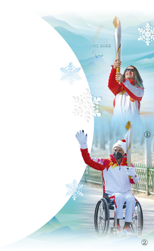 圖①:3月3日,火炬手、國際殘奧委會運動員委員會委員瑪蒂娜·凱羅尼傳遞火炬。