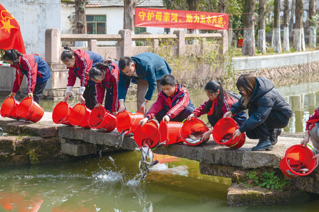近日,金華蘭溪市永昌街道開展漁業增殖放流活動,向溪流投放鳙魚苗。據了解,蘭溪市蘭江水域開展增殖放流活動已有20多年,品種有蝦蟹類、花鰱、白鰱、黃尾密鲴等多品種水生動物,不僅促進漁民增收,還有效改善蘭江水質,豐富蘭江水域漁業資源。(胡肖飛)