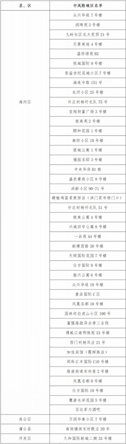連云港市45個中風險地區詳細名單(2022年3月10日)