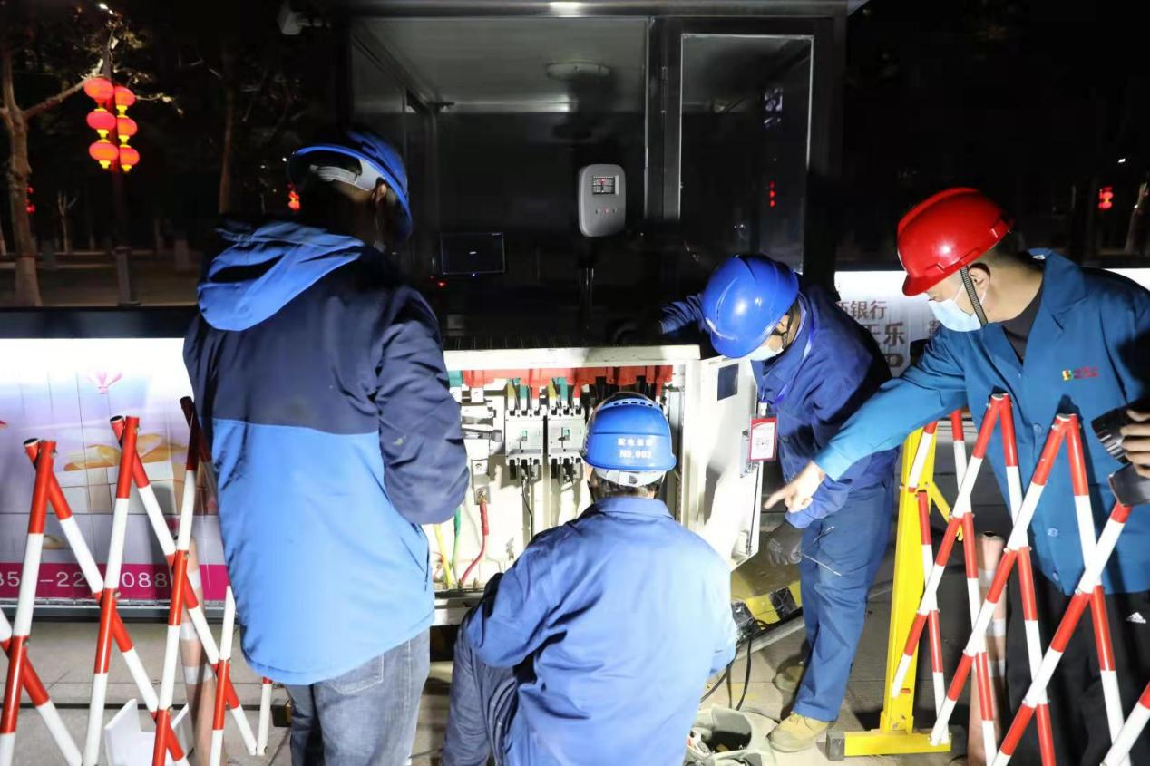 初春深夜依然寒意襲人,由于疫情影響,晉城大街小巷一片寂靜。文體宮外,供電人員卻正在緊張地工作,與時間賽跑。