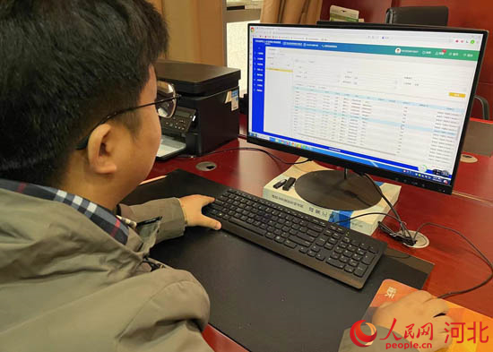 工作人員通過河北省建筑工人實名制和分賬制管理公共服務平臺監測某項目農民工考勤記錄。 人民網 林福盛攝