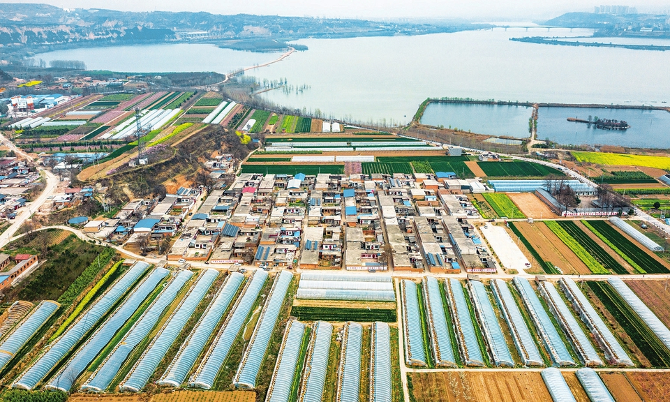 3月18日,春風輕拂下的平陸縣張村鎮后地村,風光旖旎。近年來,運城市持續推進鄉村振興戰略,農村面貌如畫如詩,整齊的民居、鮮艷的桃花、連片的大棚交相輝映,構成一幅秀美的新農村畫卷。(薛俊攝)