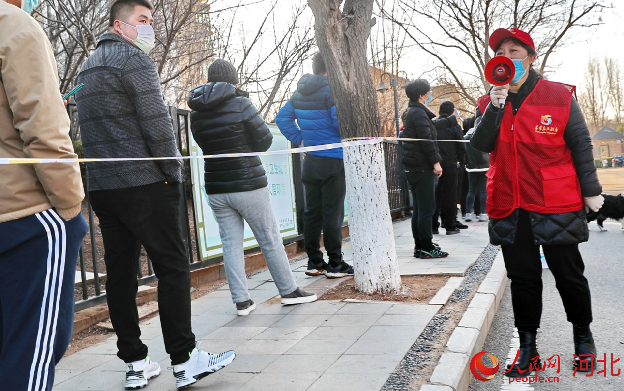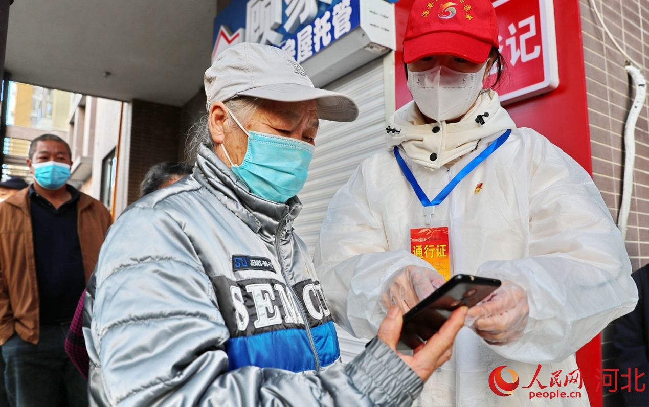 人民網石家莊3月27日電 “打開電子健康碼。”“保持好1米距離。”……3月25日上午9點,在河北秦皇島市海港區森林逸城小區,秦皇島市委組織部黨員先鋒隊隊員董菁正在組織居民有序排隊做核酸檢測,提醒大家準備好電子健康碼,耐心指導不熟悉操作流程的居民。