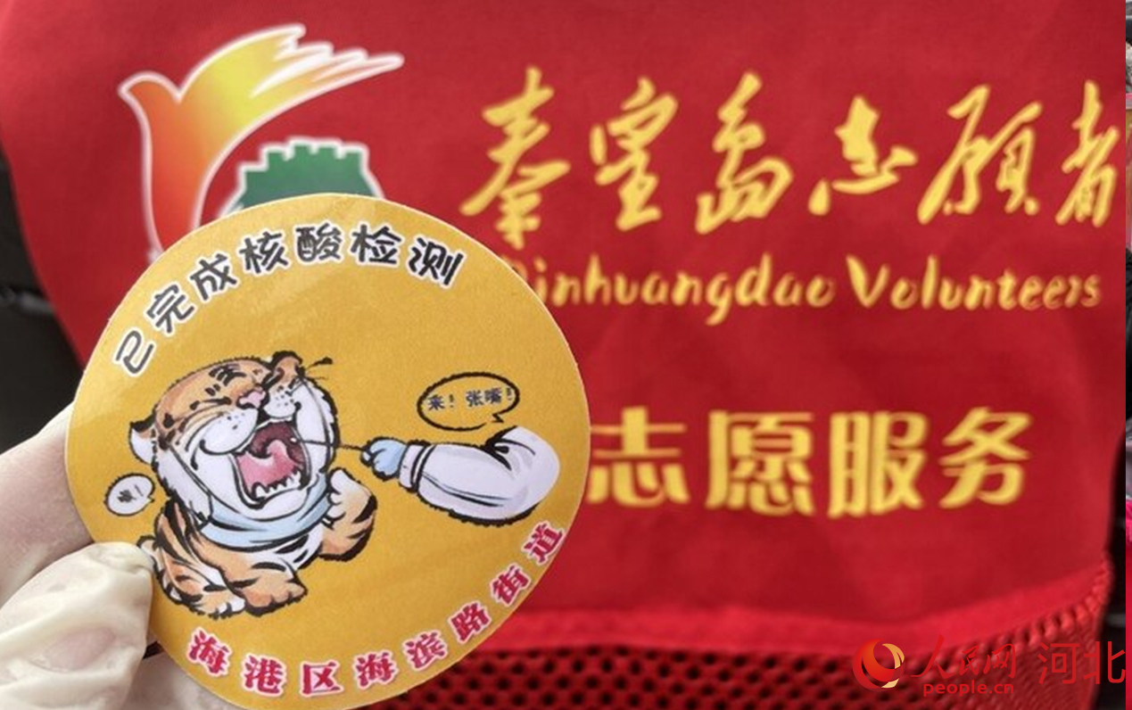 為了提高孩子們參與配合意識,海濱路街道特意制作了“兒童專屬獎勵貼紙”,發給完成檢測的孩子。貼紙上卡通小老虎檢測核酸的樣子很可愛,孩子們領到貼紙,都一臉自豪地跟志愿者互相豎大拇指。