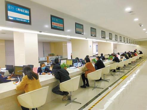 3月1日,市民在西安市碑林區市民中心跨地區通辦窗口辦理業務。