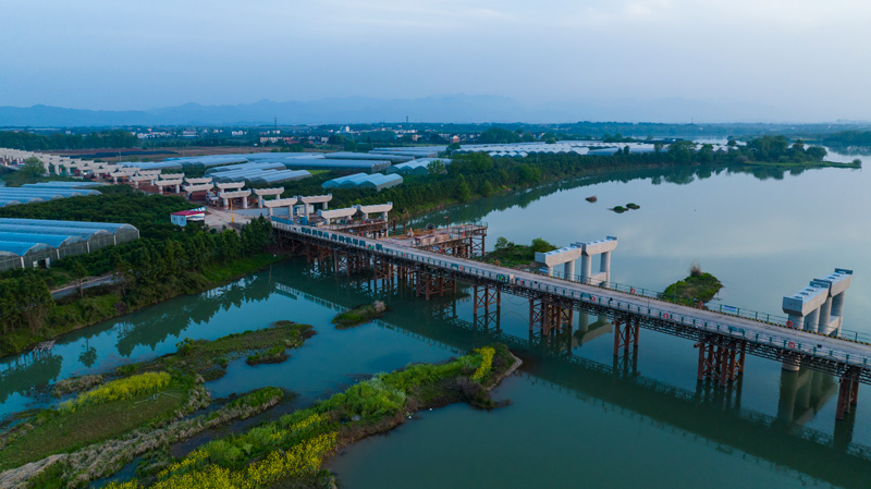 4月1日,在杭金衢高速公路改擴建二期新增衢江互通連接線重要節點跨衢江大橋,100多名工人在現場開展大橋梁板架設和主橋墩的圍堰施工。衢州地區3月24日解除疫情Ⅰ級響應相繼復工復學復市后,浙江省交通集團杭金衢改擴建二期項目第一時間復工,并于3月28日全部復工達產。