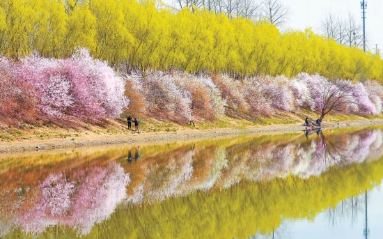 清明假期,在朝陽區壩河兩岸,翠柳拂堤,岸邊綻放的花朵如彩云般鋪陳開來,映在碧波中,描繪出一幅春的畫卷。市民們踏青賞花,享受愜意的假日時光。本報記者方非攝