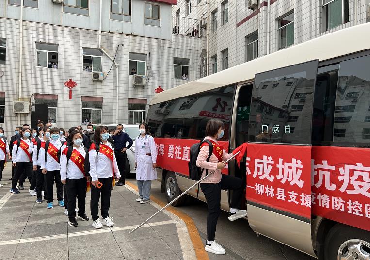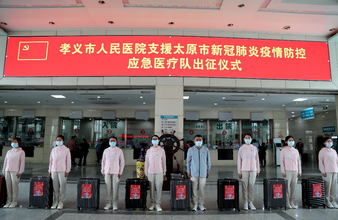據悉,49名醫護工作人員中,包括孝義市13人,柳林、臨縣各12人,汾陽兩家醫院各6人。(裴芳 李東煒 攝)