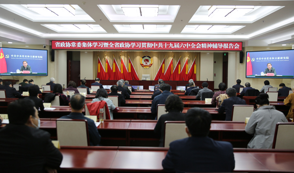 河北省政協舉辦常委集體學習暨全省政協學習貫徹中共十九屆六中全會精神輔導報告會對中共十九屆六中全會精神進行系統深入解讀。胡澤瑞攝