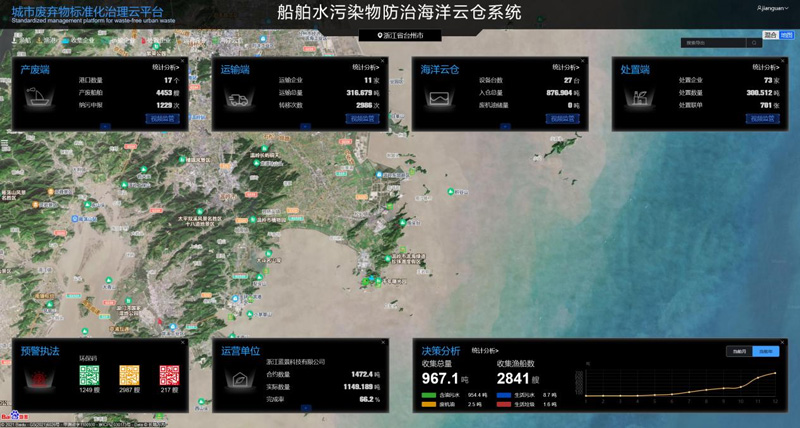 “我們通過‘物聯網+區塊鏈+大數據’等技術手段以及移動專屬政務云資源和5G網絡,打通了港航、海事、生態、交通等7個部門數據壁壘,在船舶污染物申報、接收、運輸、處置各關鍵節點生成可視化‘電子五聯單’,通過區塊鏈技術加密數據后,按照污染物監管權責精準推送至各主管部門,實現了多個部門的數據互通。”浙江移動臺州分公司工作人員介紹。