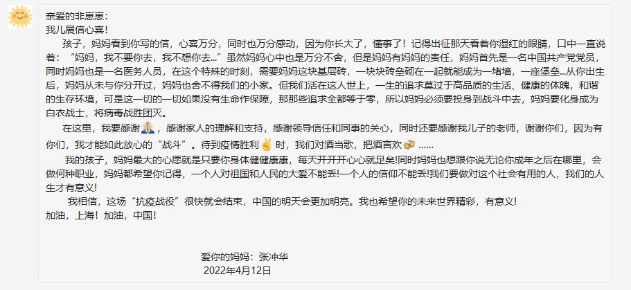 “一個(gè)人的信仰不能丟” 援滬護(hù)士凌晨給兒子寫(xiě)下一封家書(shū)
