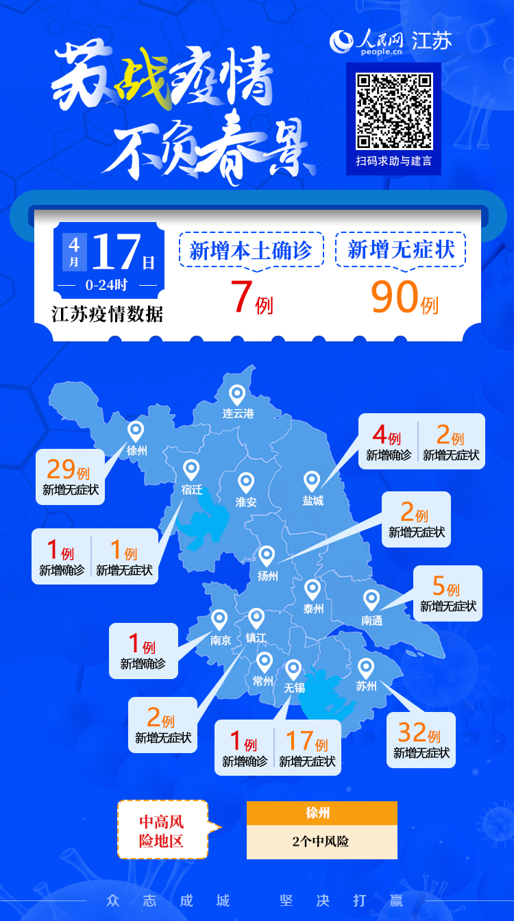 4月17日江蘇新增本土確診病例7例 本土無(wú)癥狀感染者90例
