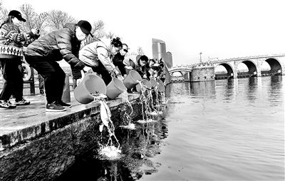 據市水科學院和北運河管理處近期開展的生態環境調查研究顯示,北運河現有魚類20余種,其中包括北京市地方二級保護水生野生動物5種。雖然品種豐富,但數量欠缺。此次增殖放流主要是通過投放鰱、鳙、鯽等濾食性魚類,增加魚類種群數量,濾食水體中的浮游動物及浮游植物,以控制這些浮游動植物在水中過度生長,使水生態系統快速重構,促進河道水生態環境改善。