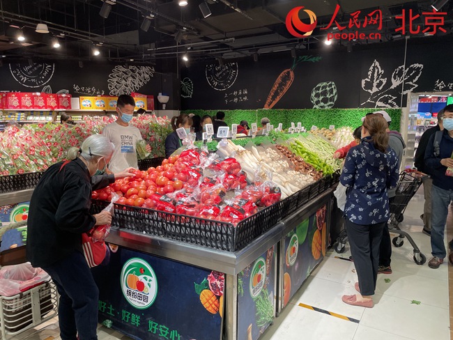 在物美超市雙井店,新鮮的蔬菜水果擺滿貨架。人民網 董兆瑞攝