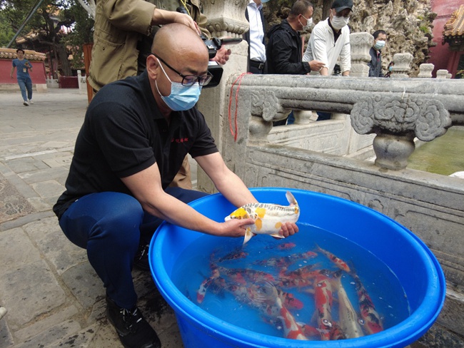 4月25日,在萬物復蘇、綻放生機的季節,北京市水產技術推廣站再次選送興國紅鯉、中國彩鯉、龍鳳彩鯉共計600尾北京本地培育的觀賞魚代表品種投放到故宮博物院內的金水河與御花園水池中,充分詮釋城市漁業的內涵,讓現代新型漁業推廣工作成為首都環境和諧發展的亮點工程。