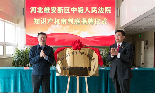 河北雄安新區中級人民法院知識產權審判庭揭牌儀式現場。 雄安中院供圖