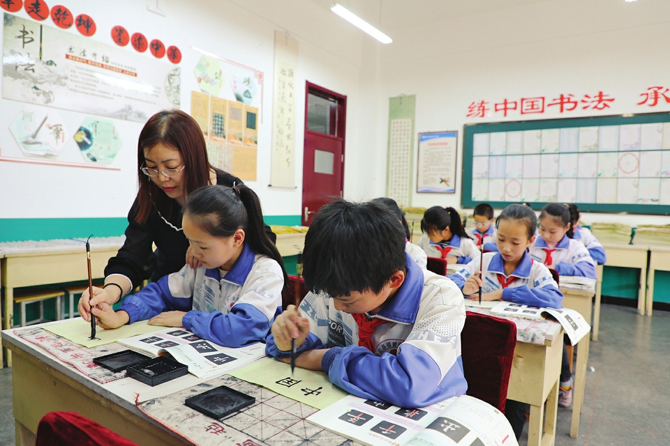 平定縣鎖簧示范小學堅持把“練中國書法、承傳統文化”的理念貫穿于教書育人全過程,2021年把書法教育納入課后延時服務。張春林攝