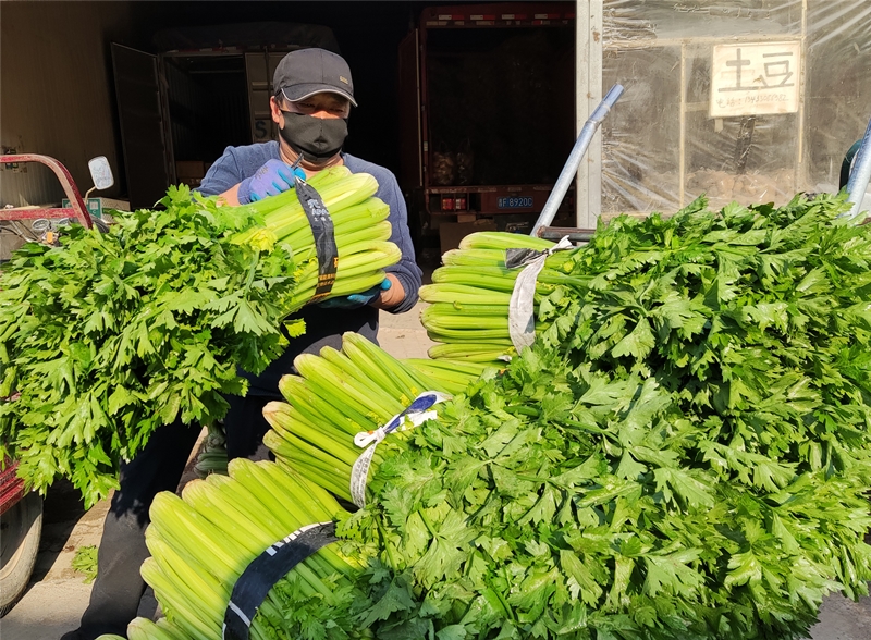 “市場每天大約回貨是40多輛車,蔬菜一百七八十噸,水果一百四五十噸。蘋果、梨、香蕉等常見水果及白菜、西紅柿、黃瓜等日常蔬菜供應充足,可以充分滿足市民需求。”市場副經理王健說。