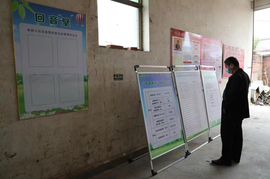 居民在查看老舊小區改造情況公示。 張明月攝