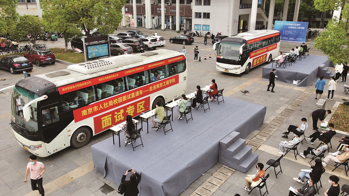面試大巴進高校 南京首次嘗試畢業生“見面不接觸”求職