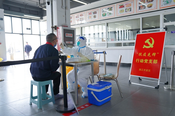 核酸檢測團隊走進制造業企業。濱江開發區供圖