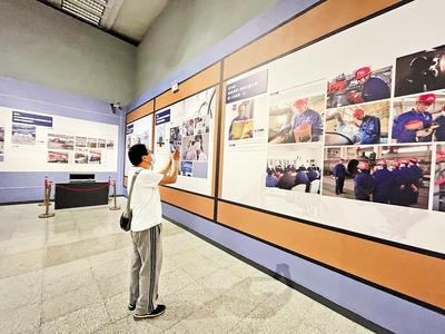 5月17日,游客在河北博物院觀看“河北省產業工人建功新時代風采展”。河北日報通訊員 賈希希攝