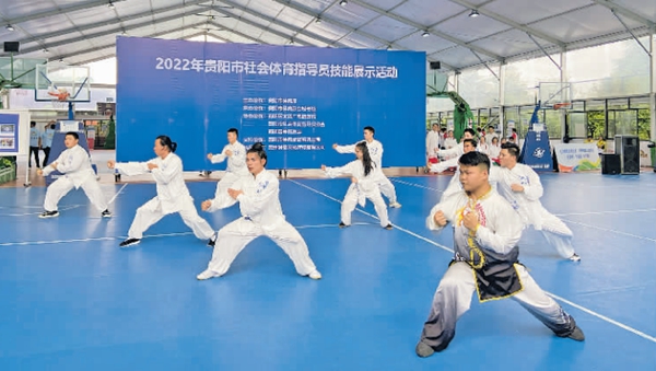 本報(bào)訊 5月25日,由貴陽(yáng)市體育局主辦的2022年貴陽(yáng)市社會(huì)體育指導(dǎo)員技能展示活動(dòng)在奧體中心舉行,來(lái)自貴陽(yáng)各區(qū)(市、縣)的10支代表隊(duì)同臺(tái)競(jìng)技,展現(xiàn)了體育舞蹈、武術(shù)、排球健身操等集體特色體育項(xiàng)目。