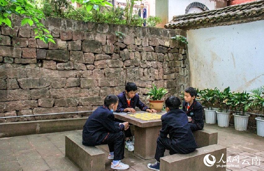 課后,一群學生聚在一起下起象棋。人民網 劉怡攝