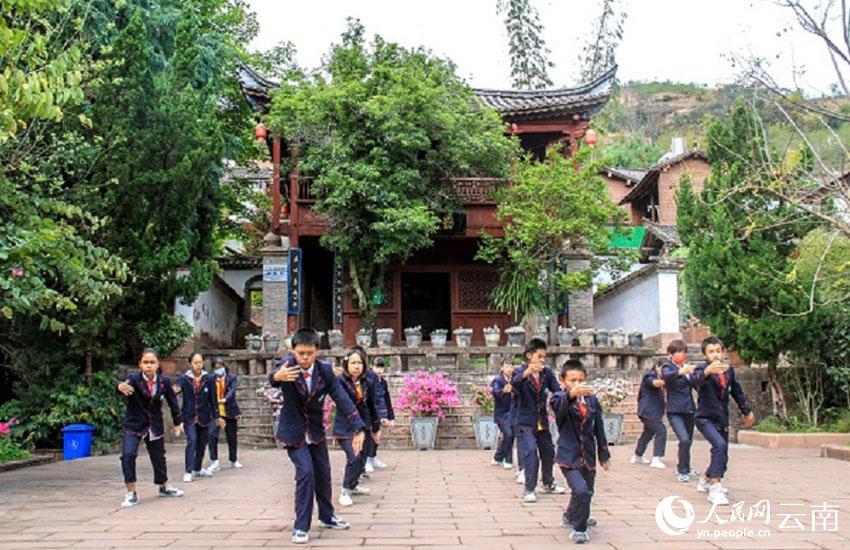 在云南省大理州云龍縣寶豐鄉,穿過一條青石鋪就的古樸街道,走進青瓦白墻的寶豐中心完全小學校門,便聽見一聲聲鏗鏘有力的鼓點。