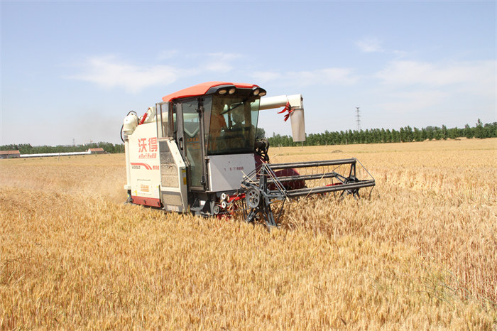 在種糧大戶呂振柏的800畝麥田里,大型收割機往來作業,看見農行工作人員的到來,老呂興奮地說起了今年小麥的產量收成:“今年麥子很好啊,雖然雨水有點少,但是有了貸款支持,澆水、施肥、打藥等管理都沒耽誤過,預計畝產能達到1200斤,而且價格比去年也高了,能賣個好價錢”。