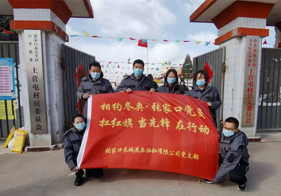 長城液壓油缸有限公司開展“扛紅旗當先鋒”活動,為上營屯村贈送價值1萬余元的生活用品。 萬全區委組織部供圖