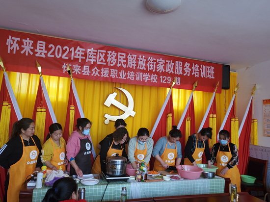 懷來縣眾援職業培訓學校對新保安鎮解放街村部分婦女進行中式面點專業培訓。 懷來縣委組織部供圖