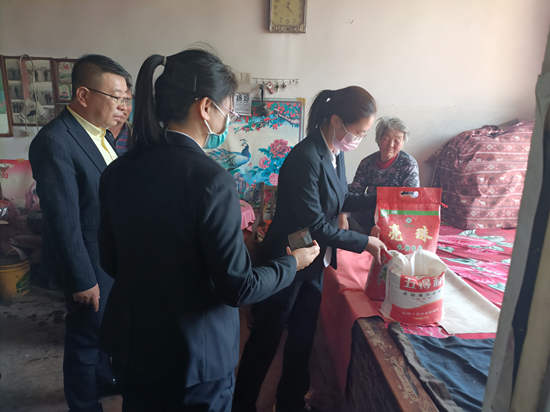 蔚縣國威大藥房開展愛心幫扶活動,為桃花鎮謝家廟村生活困難老人送去米、面、油等生活用品。 蔚縣縣委組織部供圖