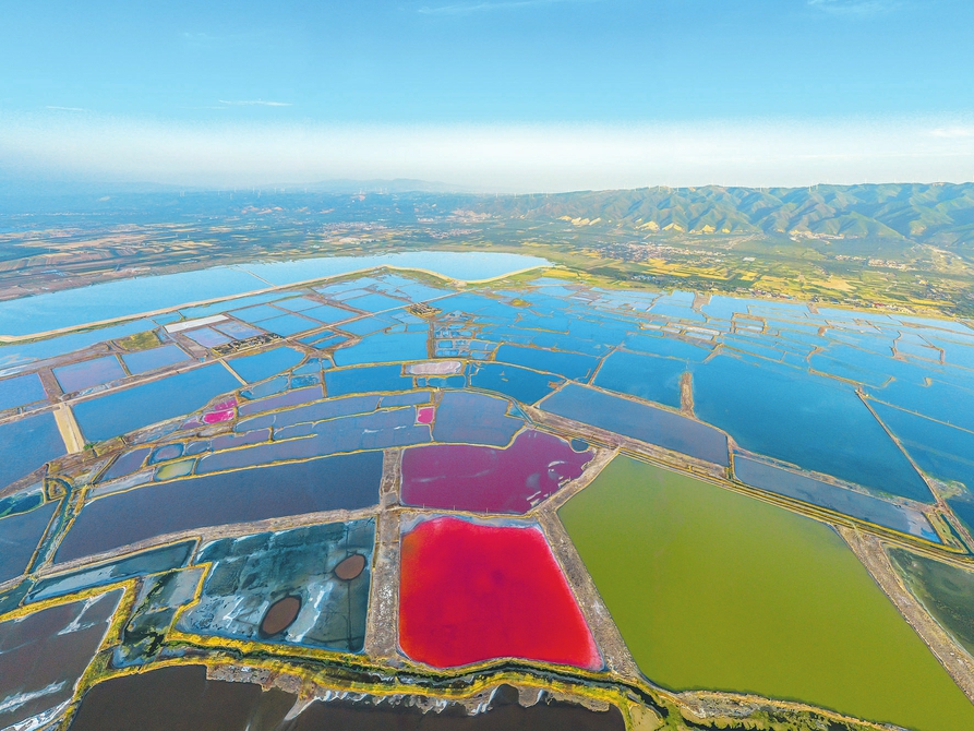 仲夏時節,隨著氣溫升高,運城鹽湖濕地呈現出色彩斑斕的美麗景觀。近年來,運城市大力實施“退鹽還湖”“還湖于民”生態修復工程,把鹽湖從礦區、工業區變為生態保護區、旅游區。(閆鑫攝)