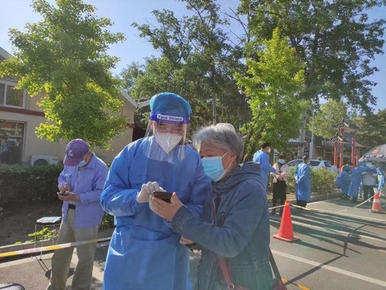 北京國企下沉干部協助社區核酸檢測。 北京國資公司供圖
