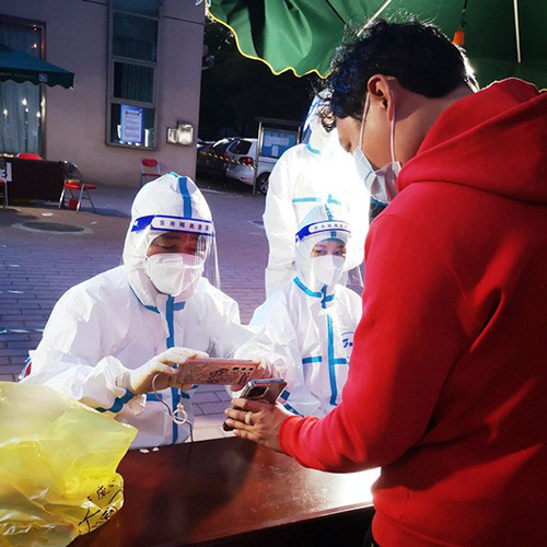 外企集團組織動員兩批次總計30名干部下沉社區一線,26歲張晶是入黨積極分子,她在成為“大白”的第一天寫下:“穿著密不透風的裝備,真切體會到了醫護人員和社區工作者抗疫的不易……世界上從來沒有從天而降的英雄,只有挺身而出的凡人。”“五一”假期張晶只休息了一天,她說自己最大的心愿是爭取早日入黨,為人民服務。