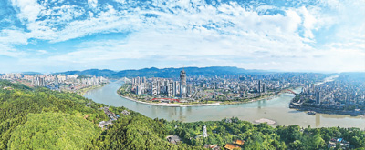 2014年以來,四川省宜賓市大力實施長江生態綜合治理,統籌推進沿長江生態修復、老工業企業搬遷、棚戶區改造、污染治理、沿線道路改造、綠道和親水休閑空間建設。圖為經過綜合治理后的宜賓三江匯流處。曾 朗攝(人民圖片)