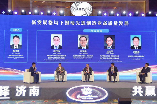 在對話交流階段,費斯托大中華業務區運營副總裁姜作林,凱傲集團董事兼亞太、美洲CEO郭進鵬,松下電器中國東北亞公司副總裁趙炳弟,濟南市工業和信息化局局長汲佩德、濟南市投資促進局局長李洪偉等,圍繞“新發展格局下推動先進制造業高質量發展”展開了對話交流。